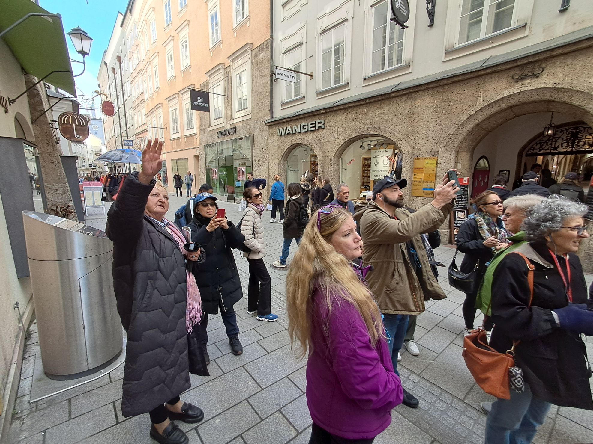 Anna and the Trafalgar group in Salzburg. Photo / Mike Yardley
