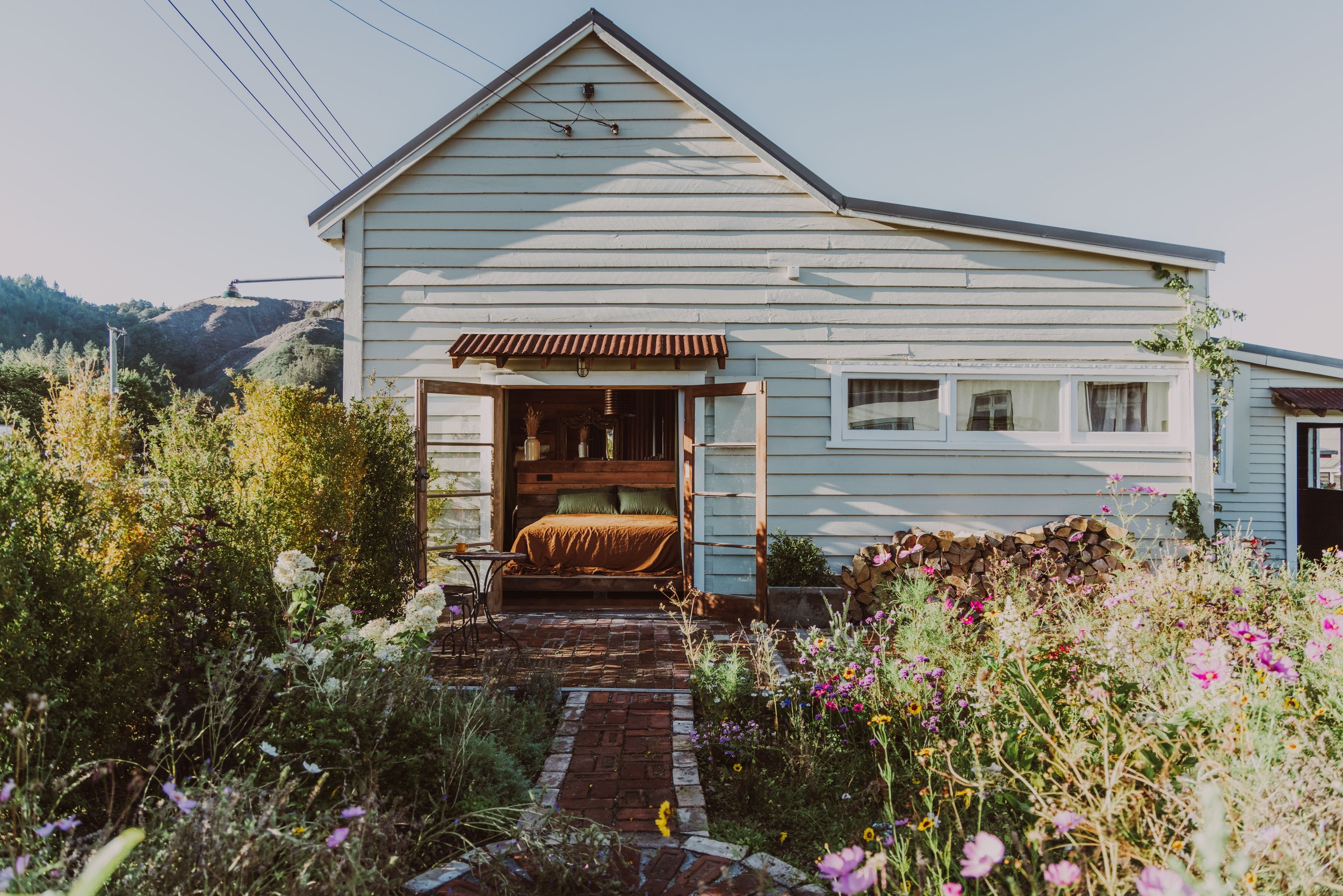 You can explore the traces of history as you admire original 1878 hand-cut Rimu wall timber, vintage newsprint, and layers of wallpaper from the past 145 years. These features are left untouched for you to encounter, as if you’ve time-travelled back to Reefton’s gold rush era. From the custom-designed bed and kitchen cabinets to the secret wardrobe and hand-built sinks, every element was designed and created specifically for the Inn. The open-plan layout, enormous leather couch and wood-fire accentuates the supreme sense of homely warmth and cosiness. The enormous tub backed with charred timber walls is another special touch, as is the wildflower garden right outside the French doors of the bedroom, heightening the country cottage oasis vibe. Then there is the novel music room with a piano, stereo and turntable – and extensive collection of vinyls. Crank it up!