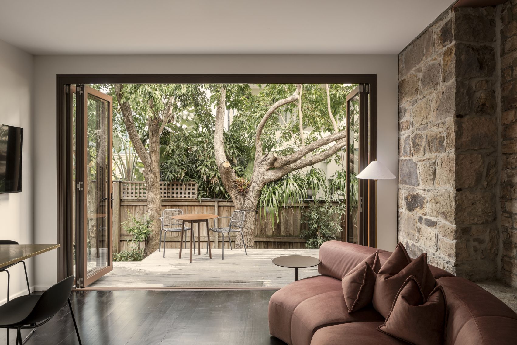 Where to stay? Live like a New Farm local in the lap of James Street luxury, ensconced at Miss Midgley’s. One of Brisbane's oldest heritage homes has been resplendently transformed into chic lodgings, under the adaptive reuse command of mother-daughter duo, Lisa and Isabella White. The project was named after Annie Midgley, an ambidextrous artist and teacher who opened a private school in the building in 1905, called Miss Midgley's Educational Establishment. Drawing on Annie's legacy, the project has a pointed focus on detailed and playful design while conserving some captivating heritage elements, like the exposed interior tuff walls -rusts, pinks and browns amplify the stone's colours.