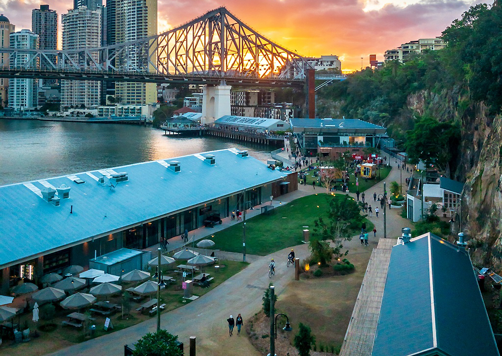 At the base of the bridge, Howard Smith Wharves (HSW) is another on-trend and characterful hospitality precinct to add to your Brisbane check-list. Felons Brewing Company is the flagship resident of HSW, one of the first outlets to lay its roots in the precinct – and it’s kept sprouting. Enjoy their freshly-brewed classic Brisbane riverside beers, and chomp down on their incredibly tasty potato pizzas. Felons Barrell Hall is the sister venue - a modern Australian take on a German beer hall, with picnic-style tables, ping pong tables and live music every weekend. Another in-the-know nocturnal haunt at HSW is the overwater bar, Mr Percival’s. Fawned over for their inventive selection of cocktails, the late-night atmosphere is cranked up with a DJ perched above their 360 degree bar.