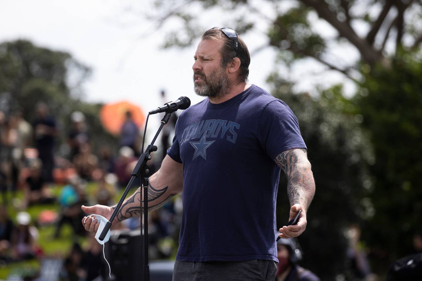 Steve Oliver at October's Freedom and Rights Coalition New Zealand Lockdown and Vaccination protest at Auckland Domain. Photo Brett PhibbsÂ