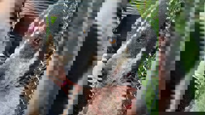 "When I climbed the fence to his enclosure he was so happy to see me and wagging his tail and jumped up for pats.