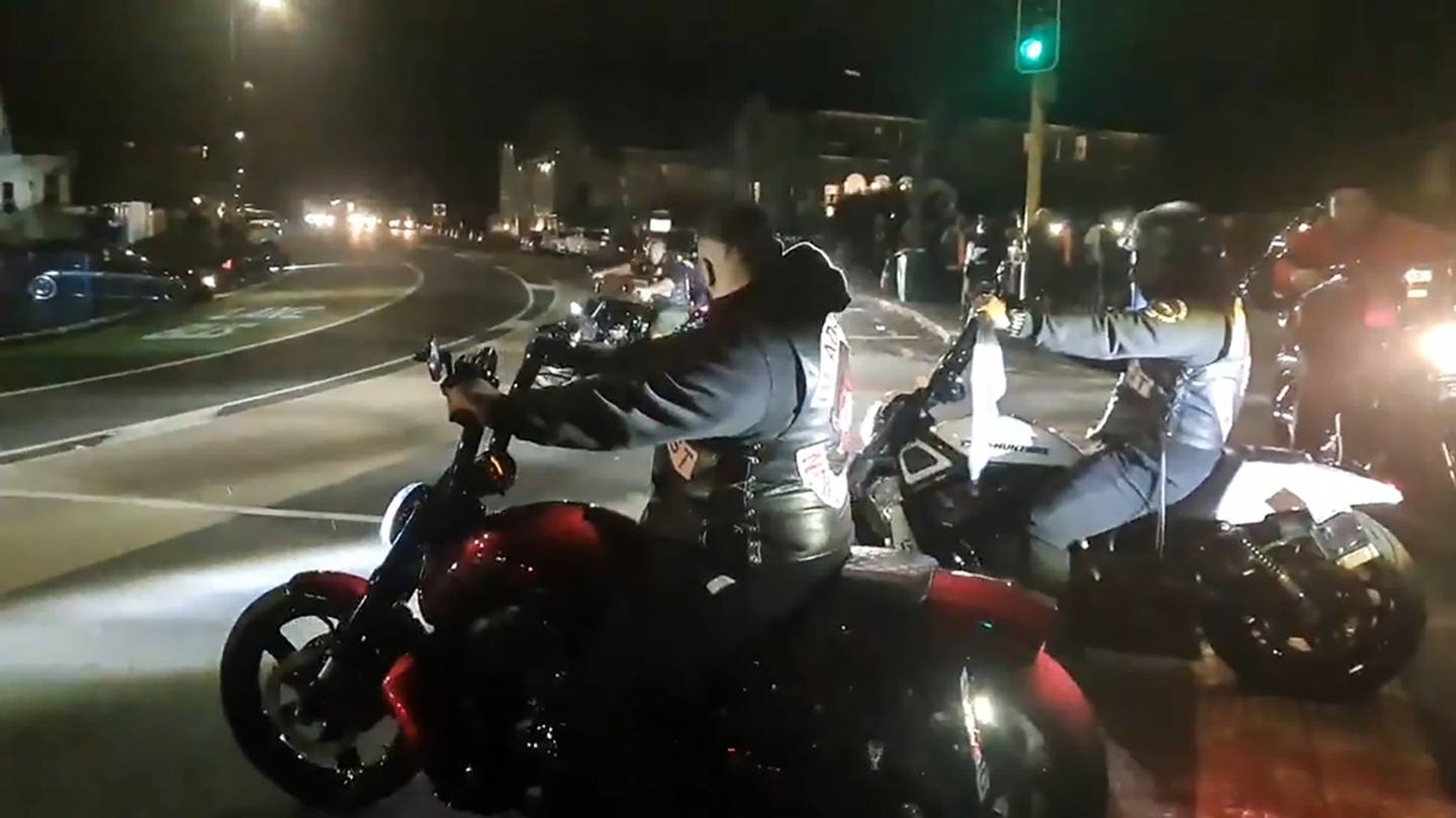 A large number of the mourners are gang members who are taking part in a funeral procession for their fallen mate.