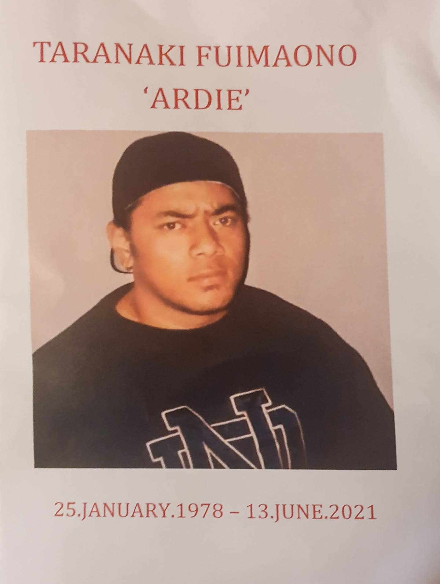 The service sheet for the funeral of Taranaki "Ardie" Fuimaono. (Photo / Supplied)