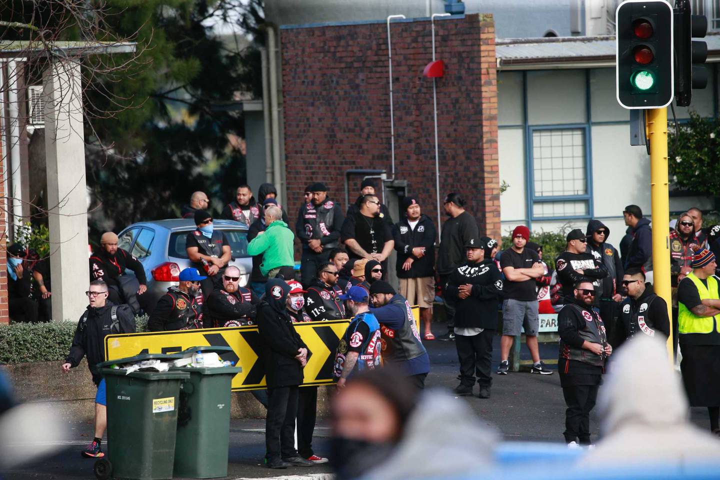 A NewstalkZB reporter at the scene said just before midday that there were hundreds of patched gang members standing outside the church; as the funeral service was taking place still inside.