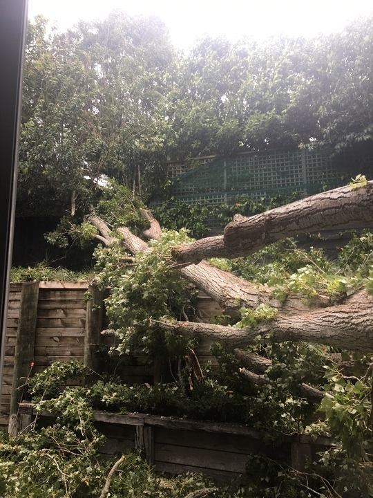 A Remuera family had a lucky escape this morning after a 20m tree fell from their neighbours' property into their backyard. (Photo / Ashleigh Tonkin)