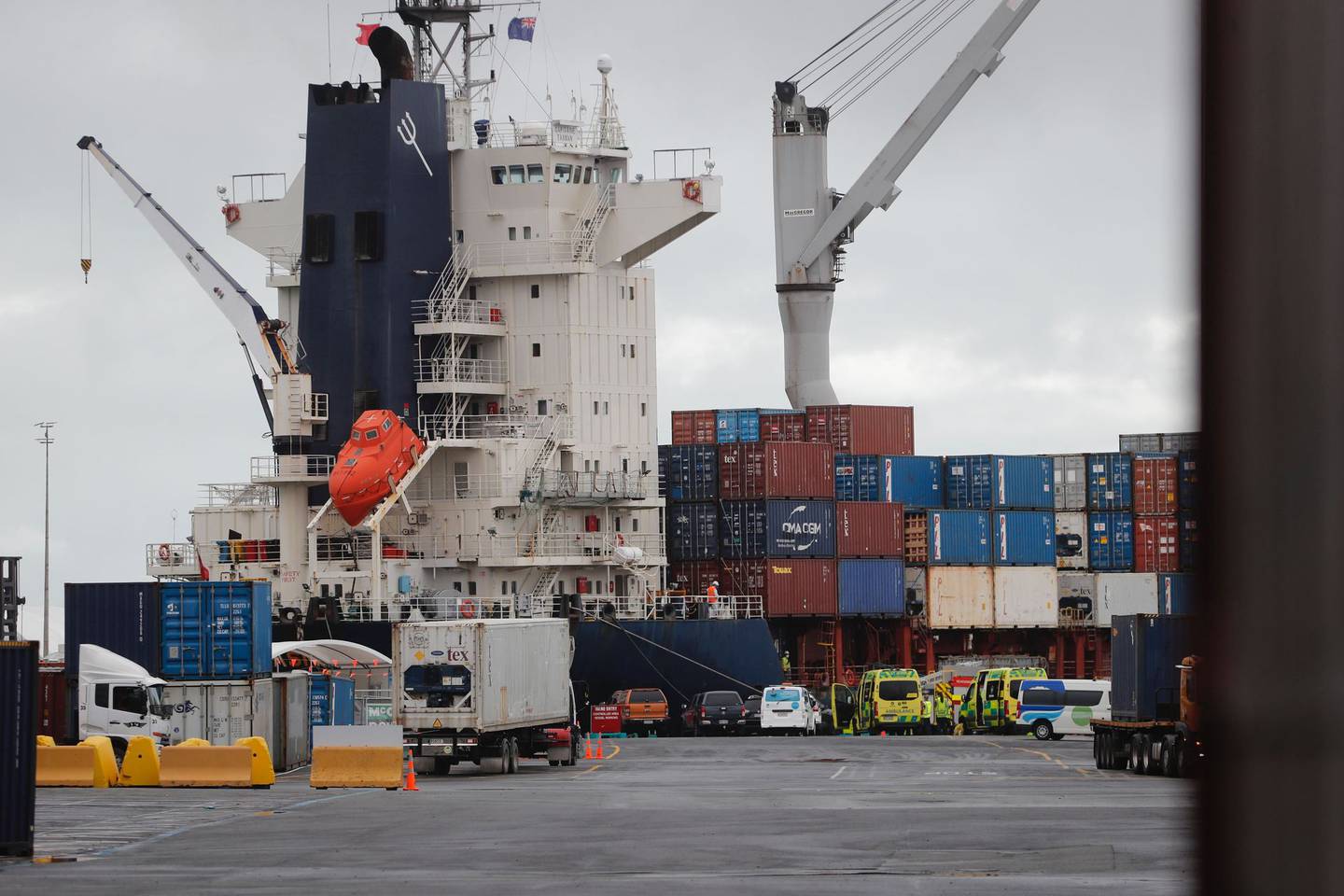 The man is understood to have fallen from height while working on a Singaporean-flagged container ship, the Capitaine Tasman. Photo / Dean PurcellÂ