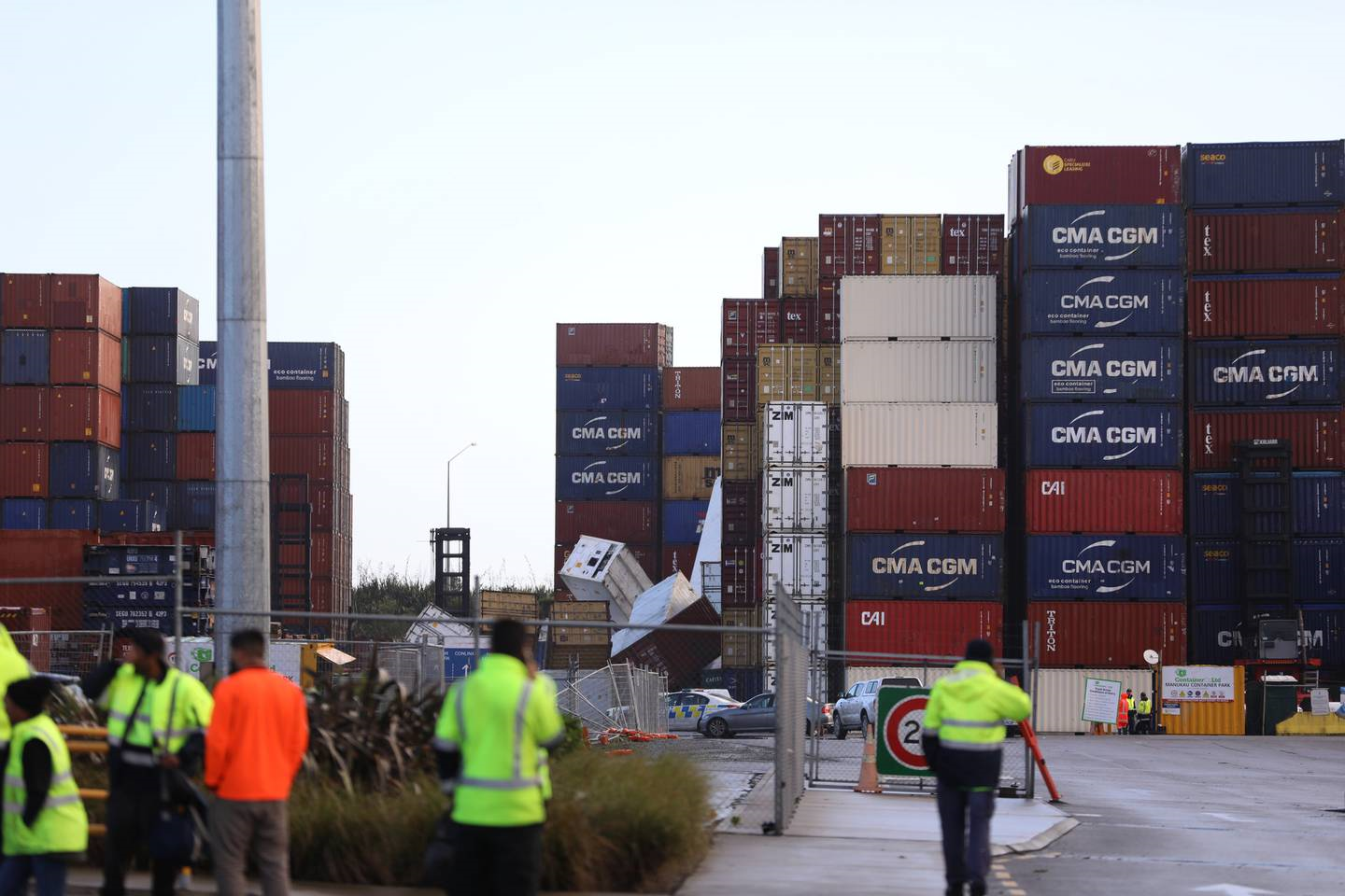 Ports of Auckland spokesman Matt Ball says the damage is widespread in the yard and dozens of containers have toppled over.