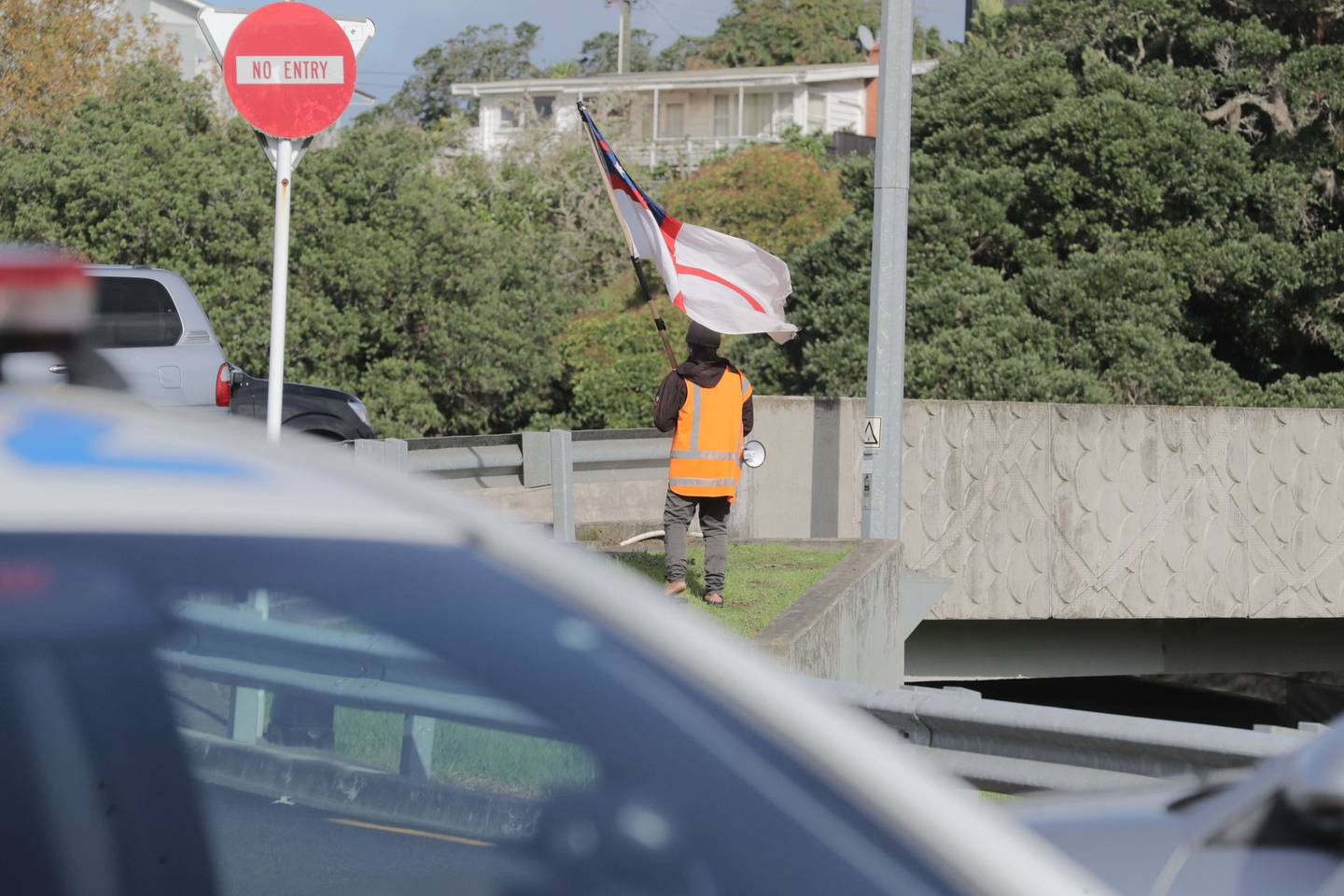 There had also been about eight police cars parked on the Onewa Rd on-ramp to State Highway 1 leading onto the bridge at Northcote Point.