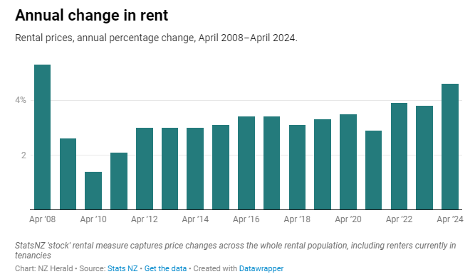 The Flow measure of rental property rose 0.1 per cent in April and 4.2 per cent for the year.