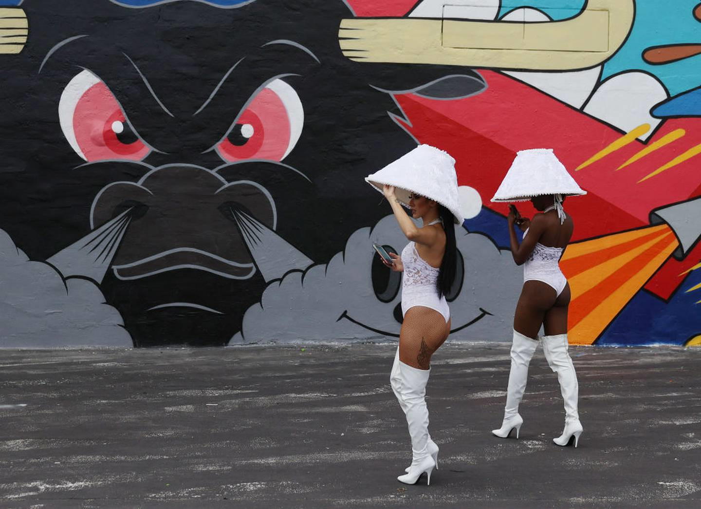 Promo girls working at the Bitcoin 2021 event, which highlighted just how far the movement has come from its basement-dwelling roots. (Photo / Getty Images)
