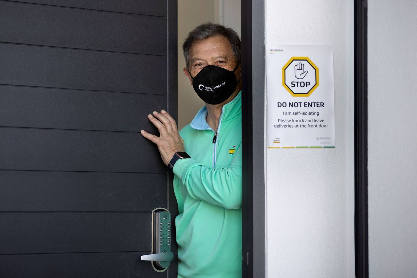 Sir Ian Taylor at his home in Auckland during his self-isolation trial. Photo / Brett Phibbs