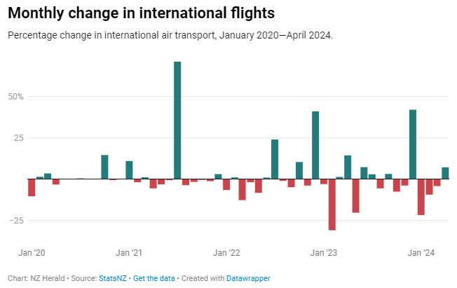 April is when peak summer capacity comes off New Zealand routes as airlines deploy planes to the northern hemisphere.
