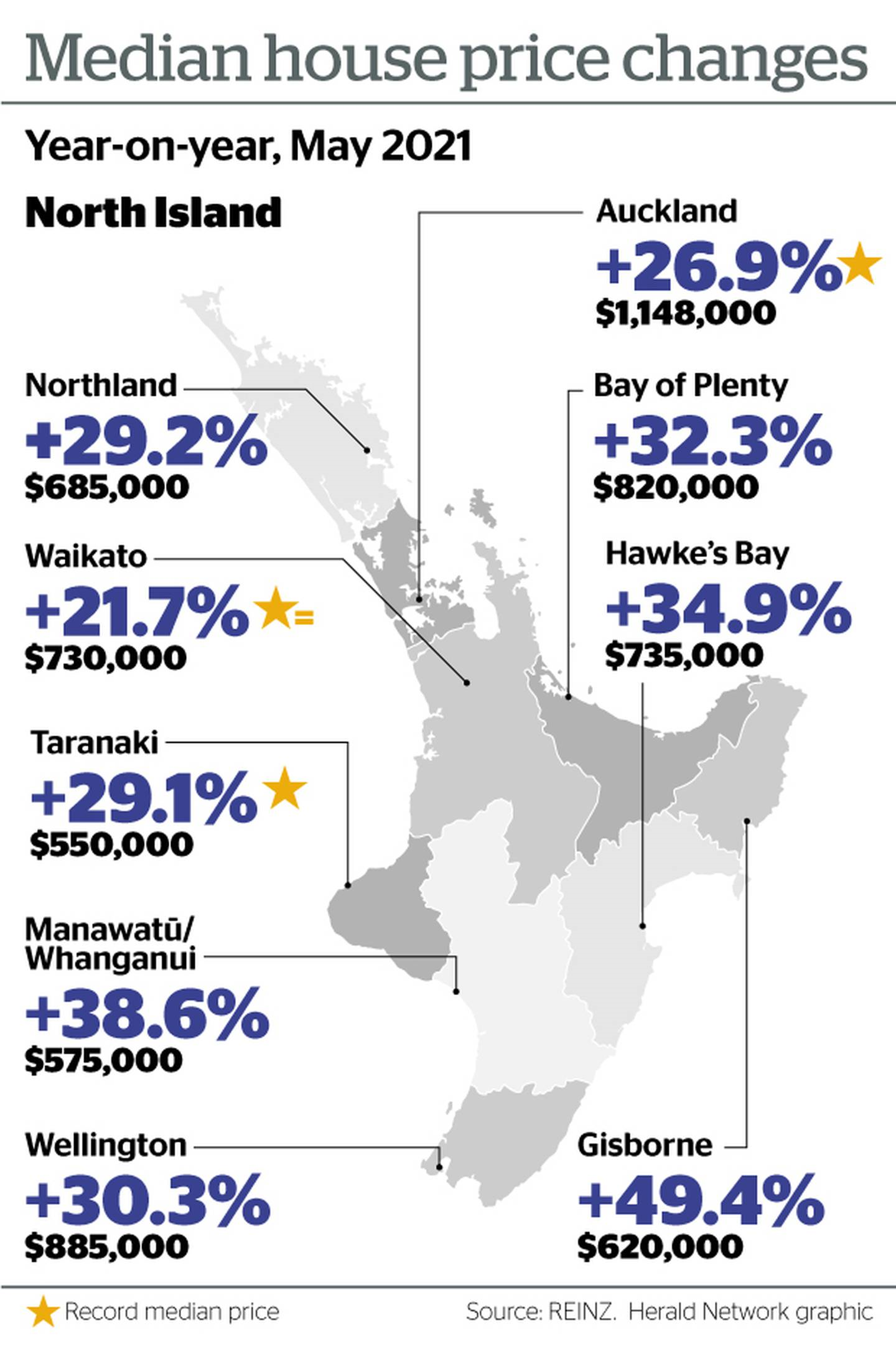 Auckland prices rose 26.9 per cent annually from $905,000 to $1,148,000 which set another new record.
