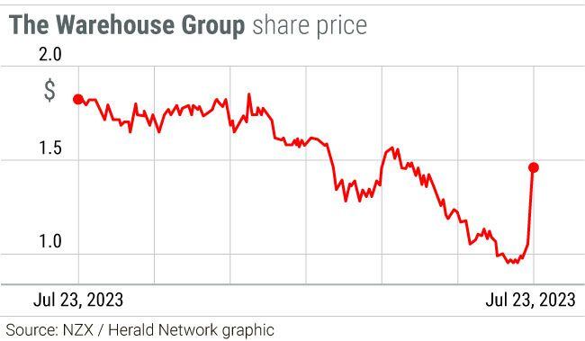 Shares in The Warehouse last traded at $1.43, having dropped by 21% over the last 12 months.