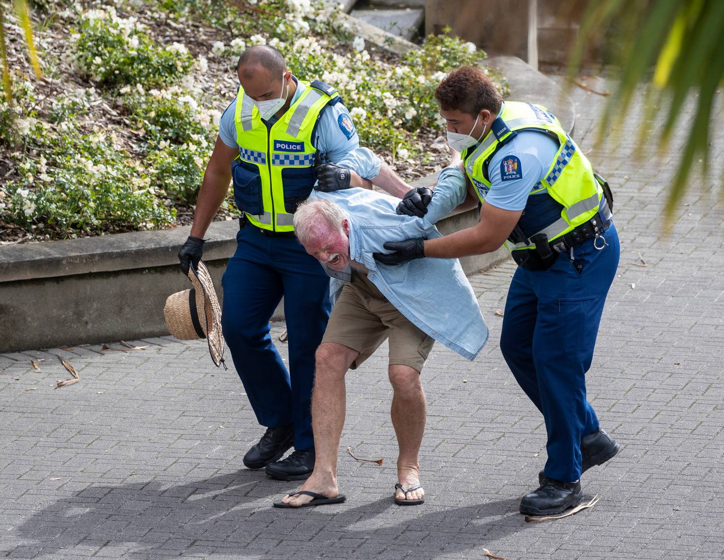 Police arresting anti-vax and mandate protesters at Parliament, Wellington. 10 February, 2022. Photo / Mark Mitchell