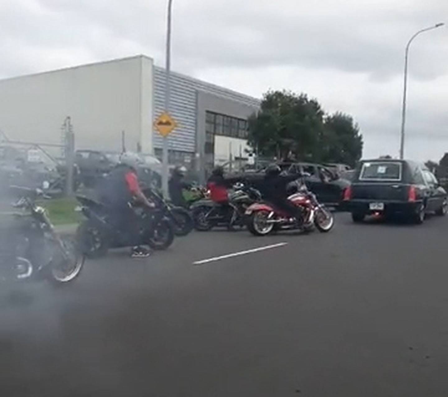 A member of the public reported "complete carnage" on Friday, October 1, as patched gang members accompanying a hearse in Henderson were seen doing burnouts on motorbikes.