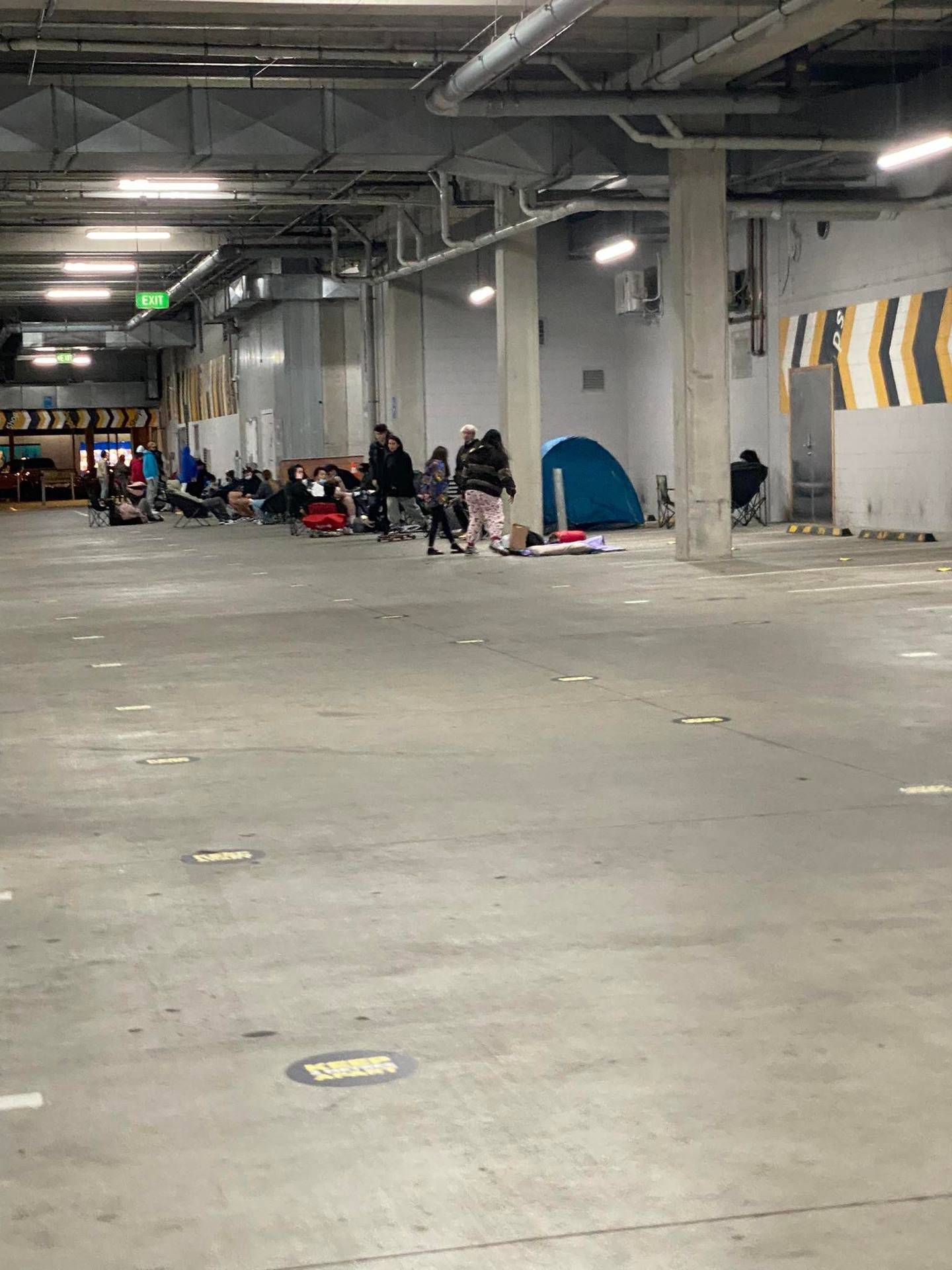 Video footage of the line outside Sylvia Park shows dozens of people camped out on chairs and some with blankets.