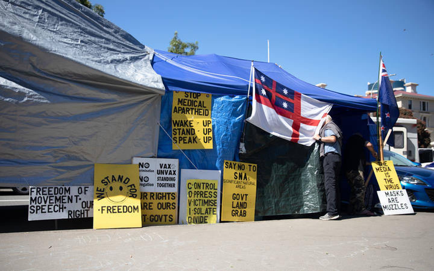 Part of the camp at the Parliament protest. Photo / Angus Dreaver, RNZ