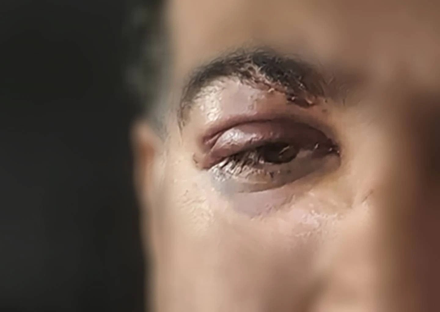 Aaron's stitched up eye a few weeks after the assault. Photo / SuppliedÂ