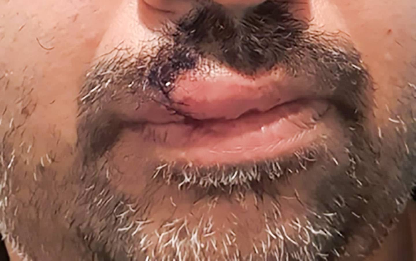 A plastic surgeon was was needed to stitch up the deep gash in Aaron's lip from the assault. Photo / SuppliedÂ
