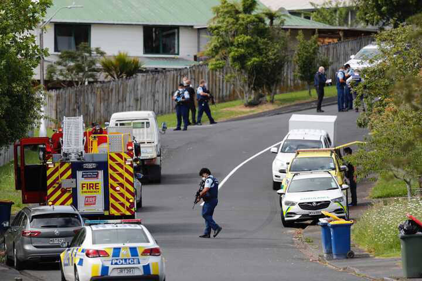 Emergency services at the shooting and house fire scene in Glen Eden. Photo / Dean PurcellÂ