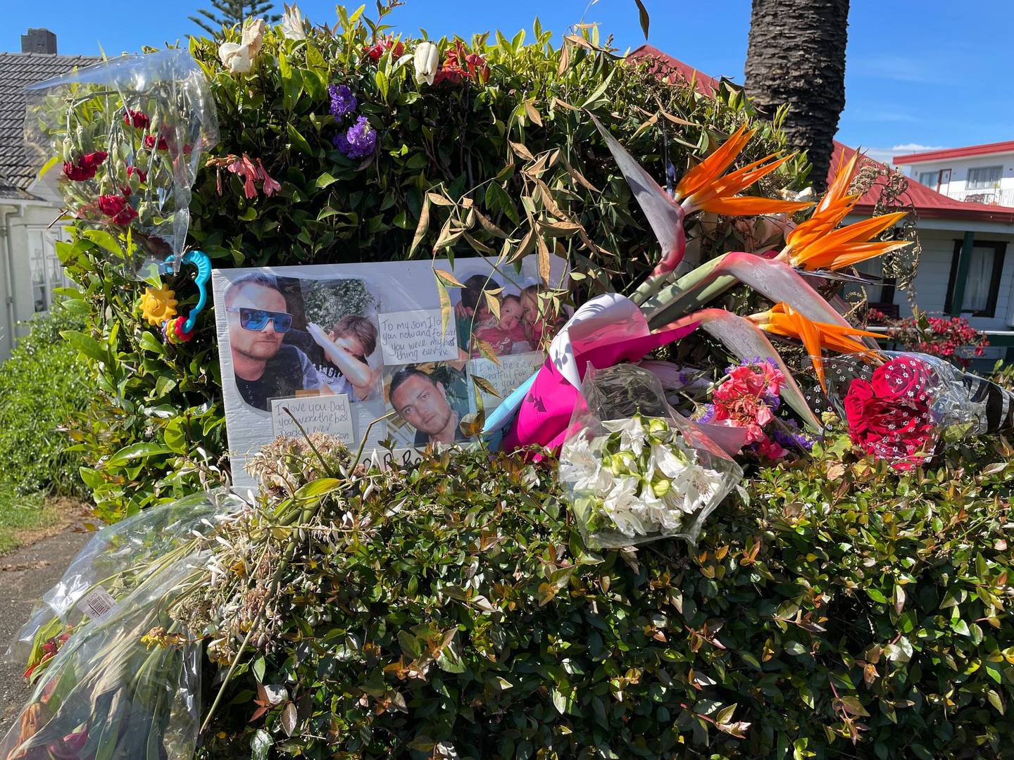 Flowers and tributes have been left near the driveway where Robert James Hart died on Friday. (Photo / NZME)Â