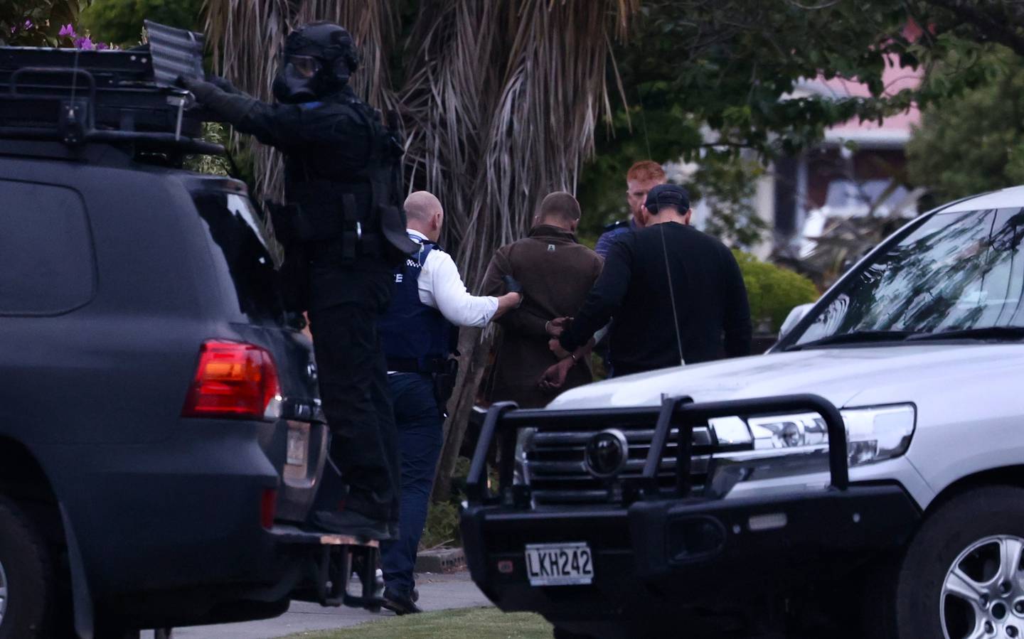 Screams and police dogs' barks were heard from within a Christchurch property as armed officers arrested a man during a three-hour stand-off. Photo / George HeardÂ