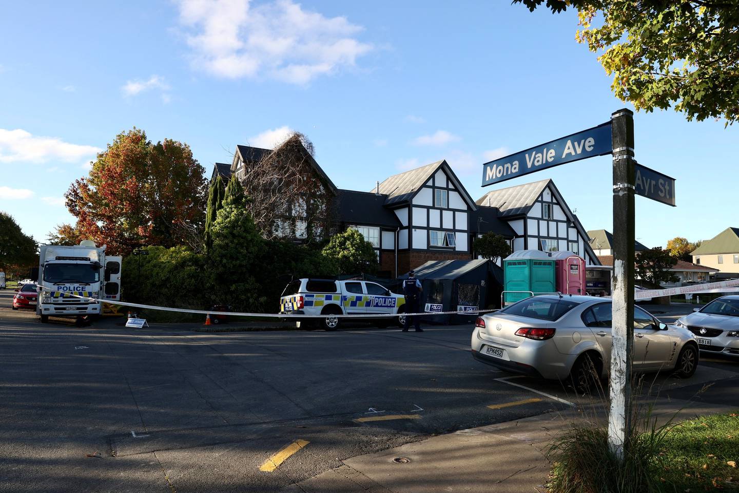 The scene at Ayr Street, Riccarton where two people were found dead at the weekend. Photo / George HeardÂ