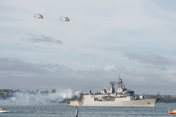 HMNZ ships Te Kaha (foreground) and Te Mana were deployed to Victoria, British Columbia, when the alleged offences happened. Photo / File