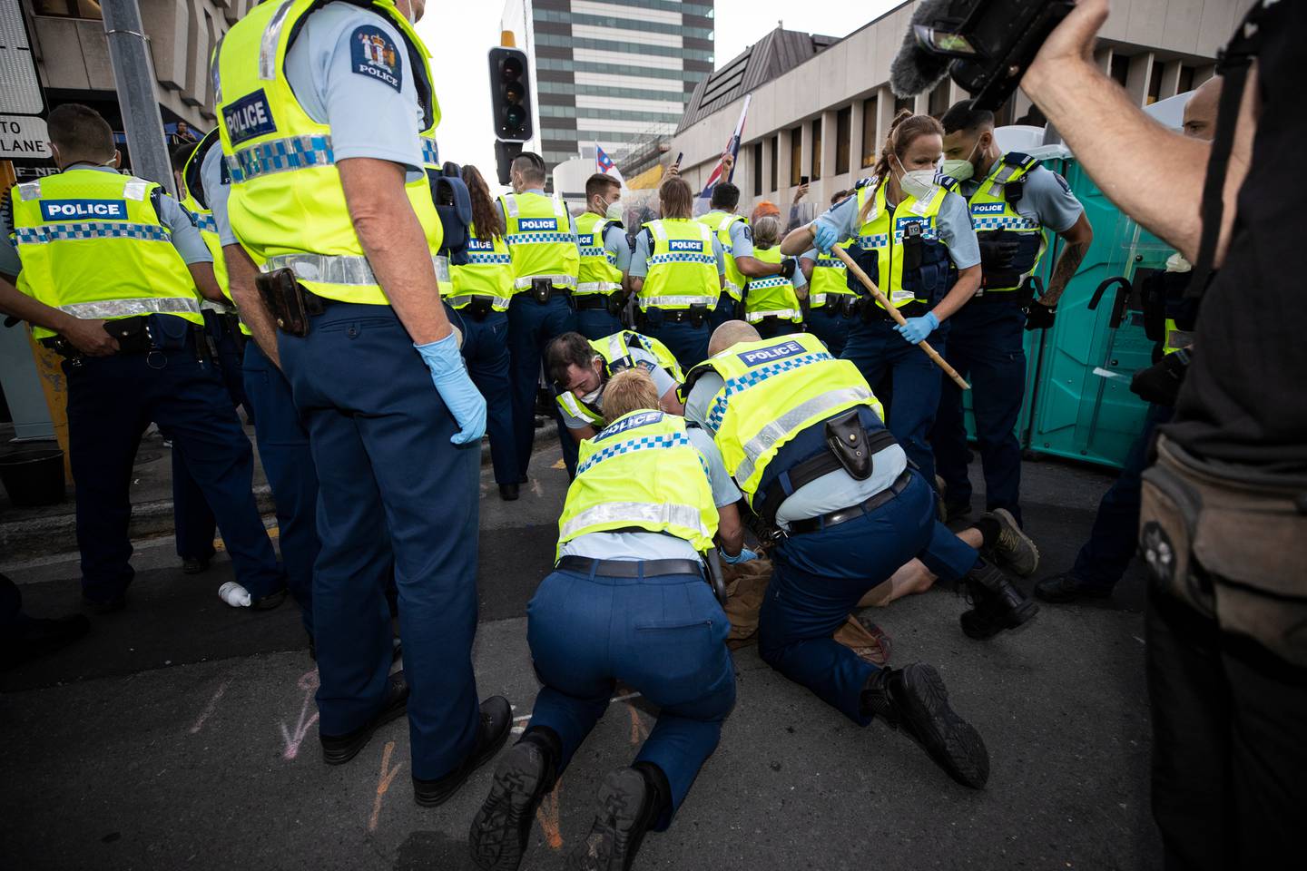 Day 15 of the anti-mandate protests at Parliament in Wellington and police have clashed with protesters after an early morning operation. Photo / George HeardÂ