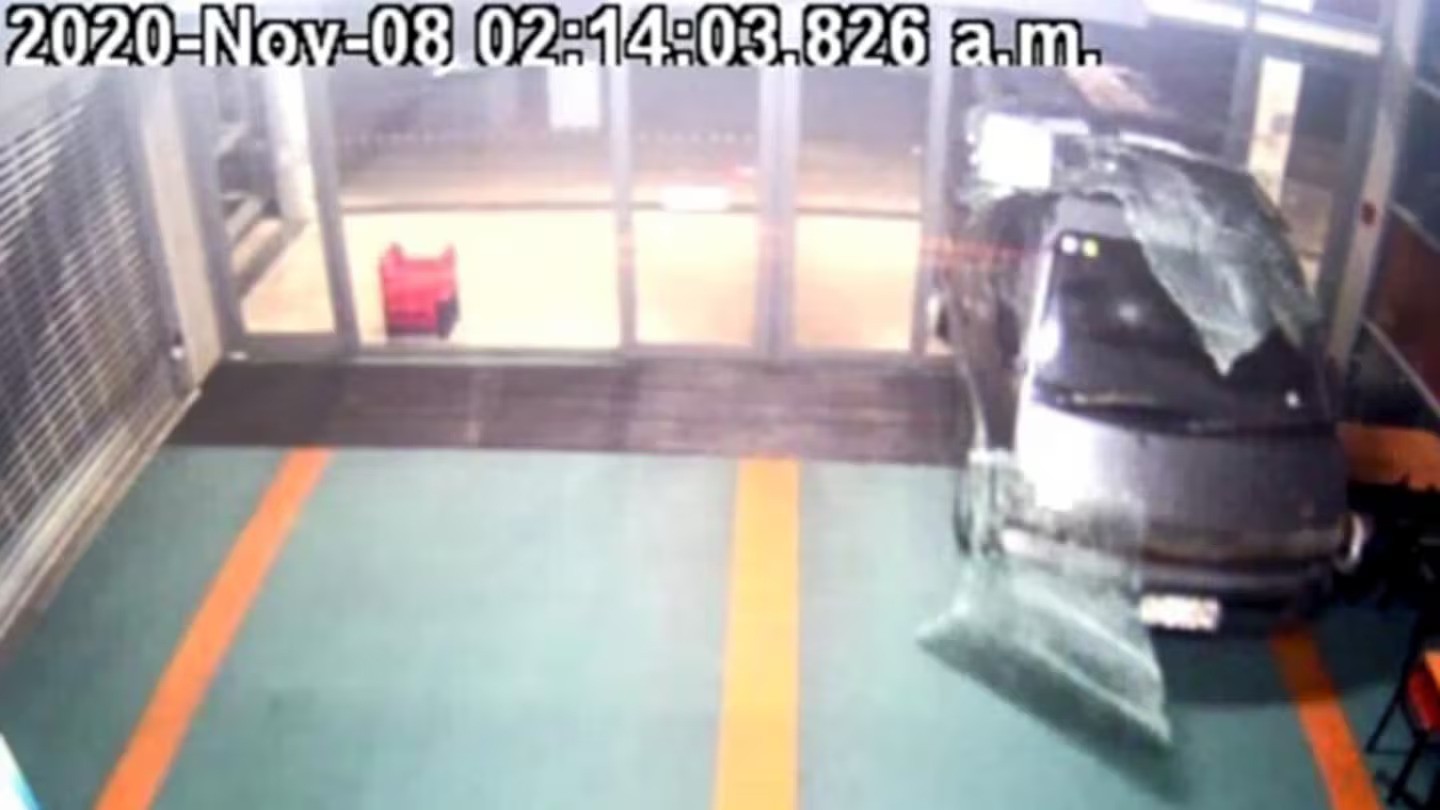 The target of the ram-raid was an ATM in the hallway, containing $19,800, which was stolen.
