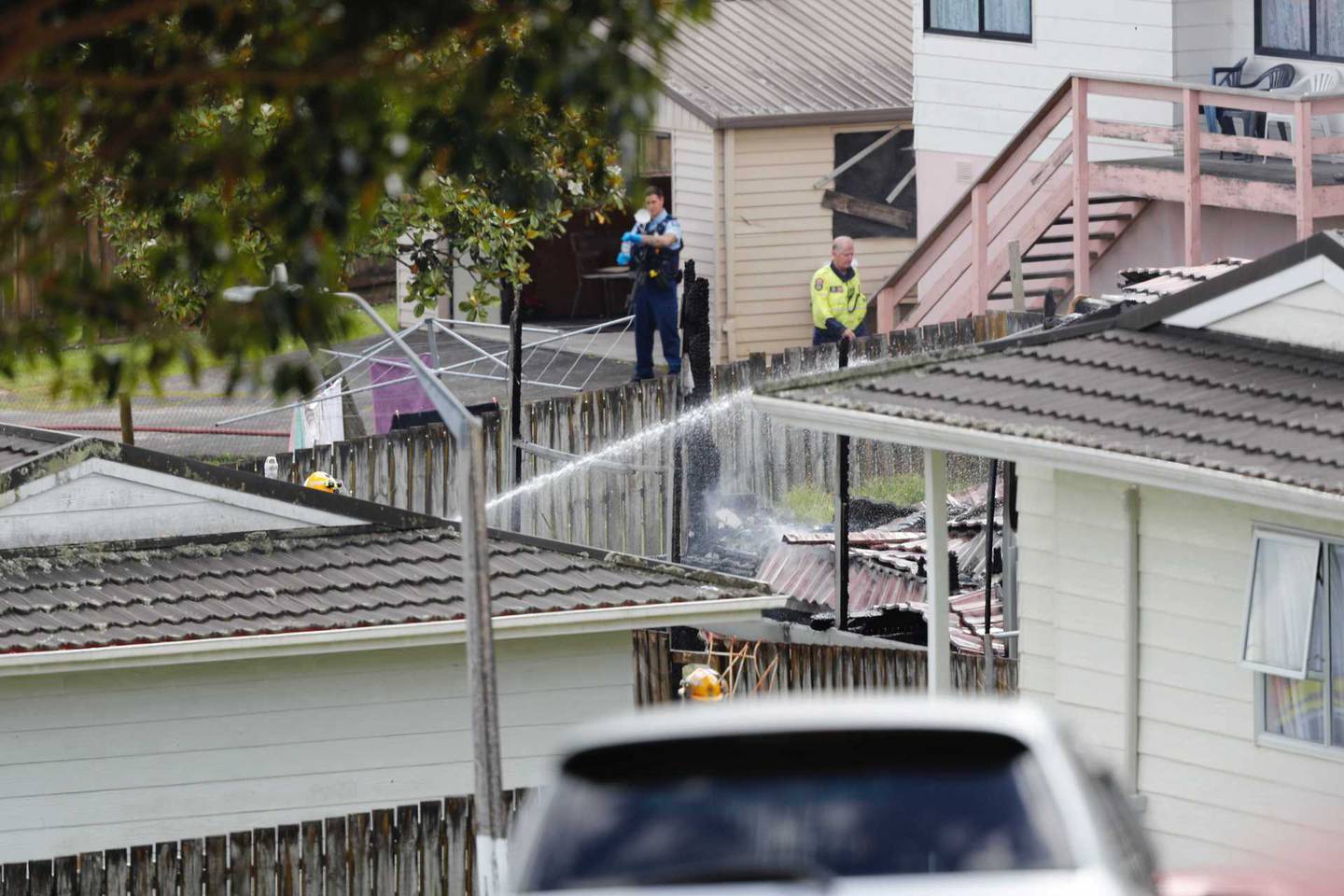 Officers were called to Danube Lane, in Glen Eden, about 8.17am after reports of a house on fire and gunshots being fired on the street.