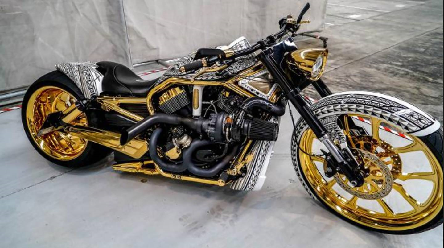 Police seized this golden motorcycle after an operation targeting members and associates of the Comanchero motorcycle gang more than two years ago. (Photo / Supplied)