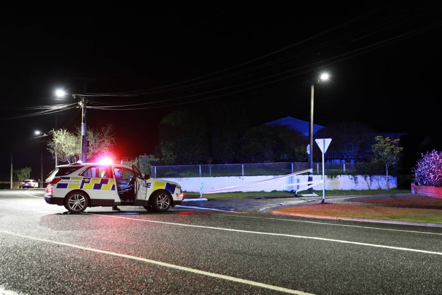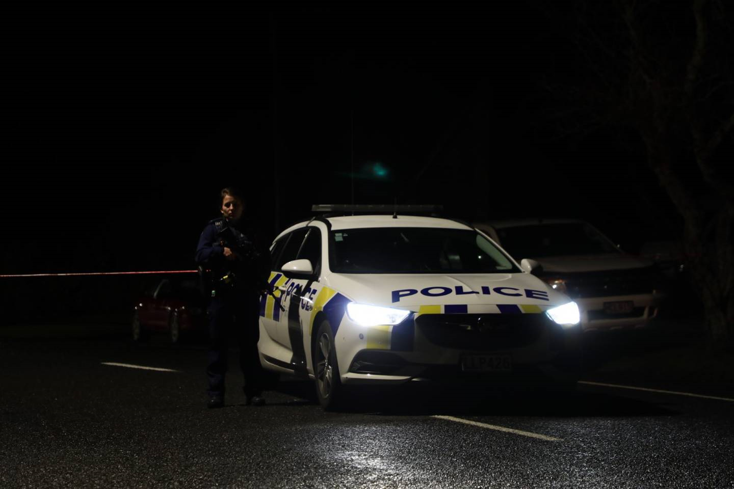 Police guard the area where a police officer was shot in Hamilton. (Photo / Hayden Woodward)