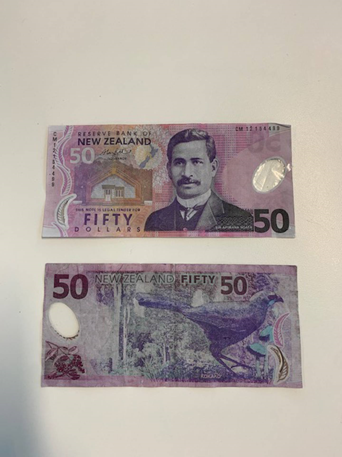 Nicholas Parker's fake $50 notes (pictured) were described by police as closely resembling real $50 notes. Photo / Supplied