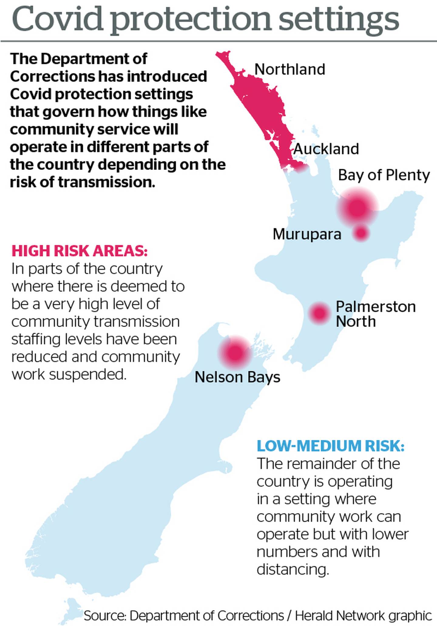 General manager probation, Darius Fagan, said community work and face to face reporting in the regions mentioned had been suspended, "unless risk and assessment determined otherwise". He said it was to ensure the safety of staff and people it managed, and to reduce the chance of Covid-19 spreading in the community.Â
