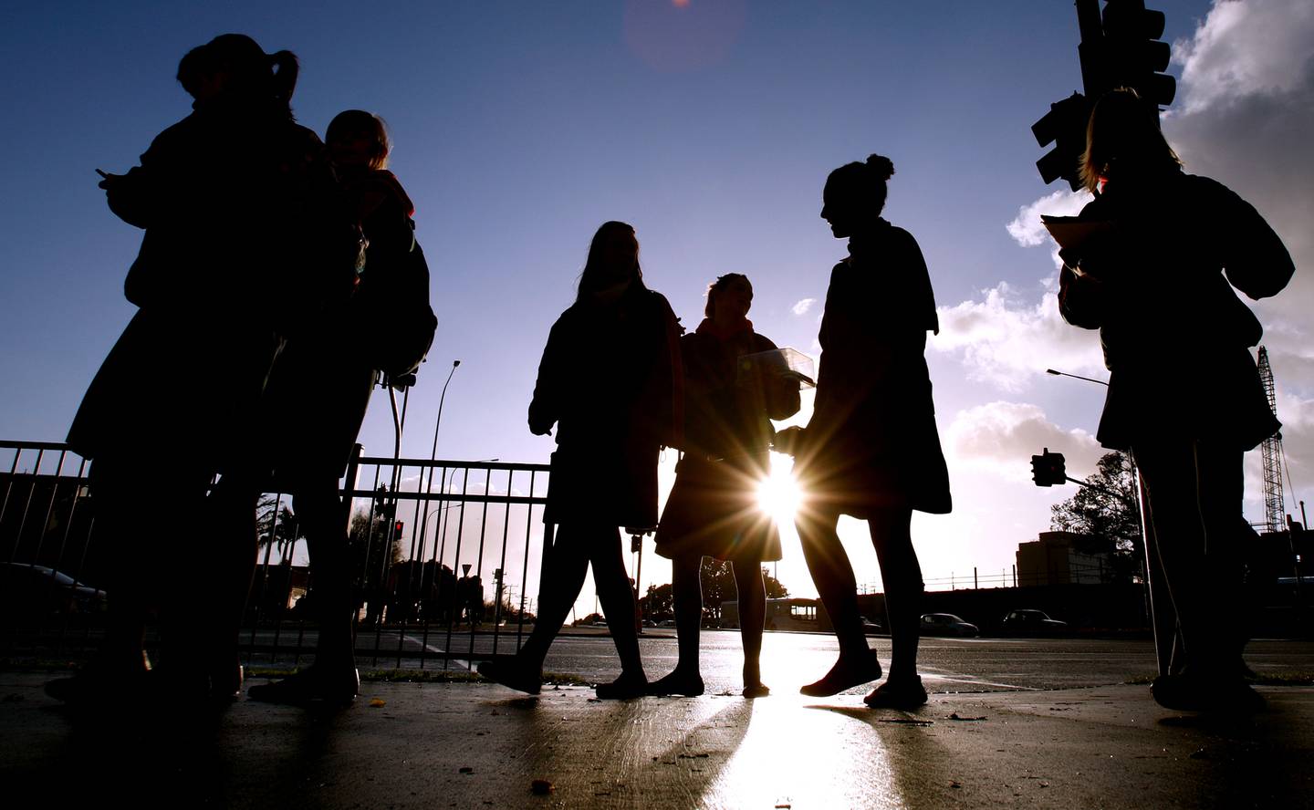 Westlake Girls' High School students make their way to school. Photo / Brett PhibbsÂ
