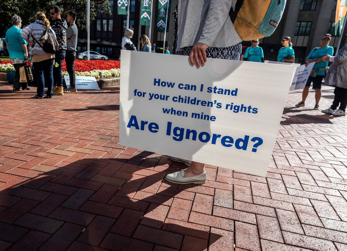 Protesters supporting the challenge of education sector vaccination mandates gathered in Wellington on Thursday. Photo / Mike ScottÂ