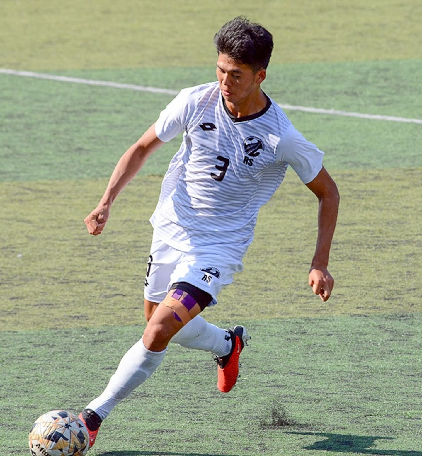Ryan Shen speeds along while co-captaining New Zealand's schoolboys football team on a tour to Australia, after also winning the national schools long jump and placing third in the 200m sprint. Photo / Supplied