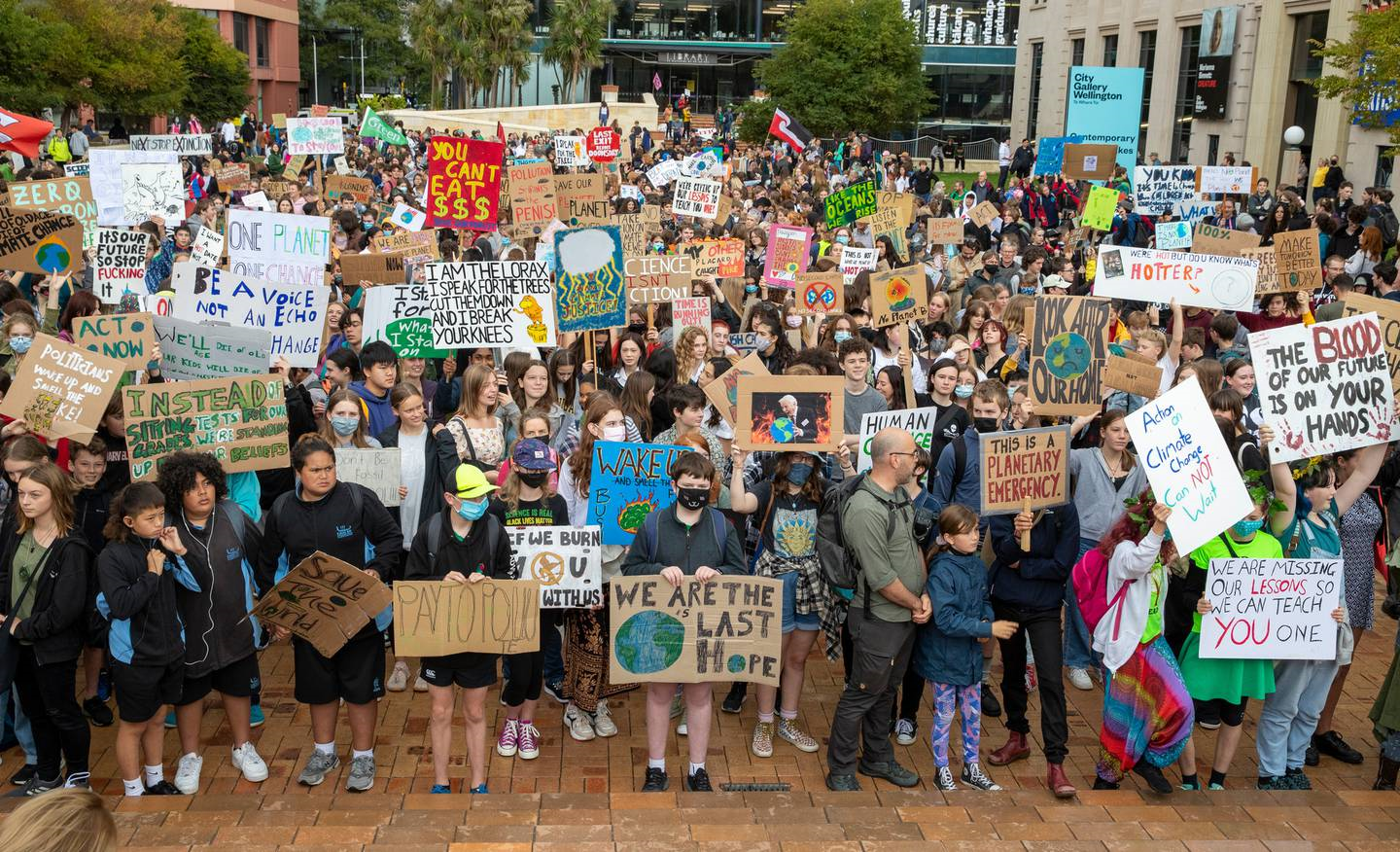 Students gathered in Wellington's Civic Square ahead of the Strike 4 Climate protest march to Parliament in April, 2021. (Photo / Mark Mitchell)