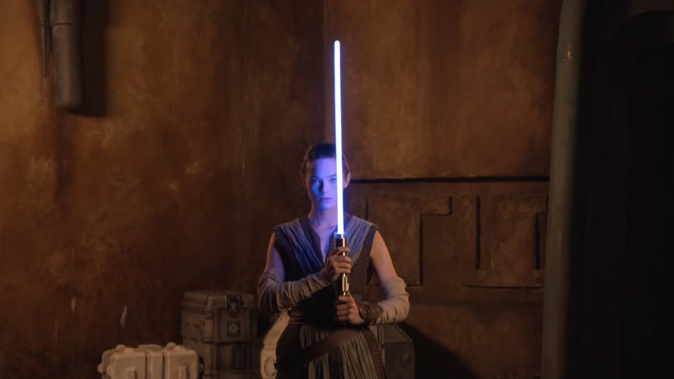 The 13-second clip showed off a Disney performer dressed as the "Star Wars" hero Rey turning on a lightsaber, with a solid, retractable blade of light extending from the hilt, just like in the movies. It's not a visual effect or a camera trick — it's as real as a lightsaber can get in this galaxy.