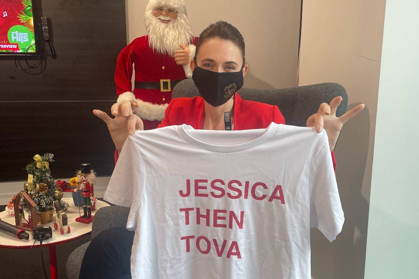 The Prime Minister won't likely forget this any time soon after she was then gifted a T-shirt from the radio hosts with the words "Jessica, then Tova" written on it.Â