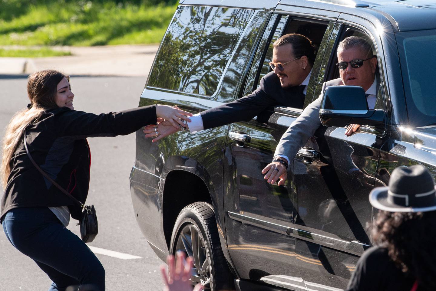 Johnny Depp reaches out to his fans as he arrives outside court during the Johnny Depp and Amber Heard civil trial at Fairfax County Circuit Court. Photo / Getty ImagesÂ