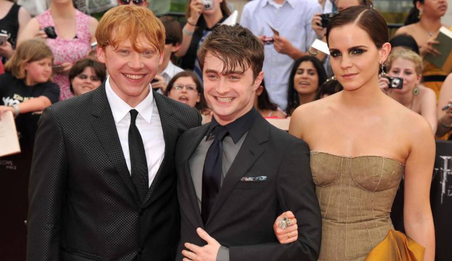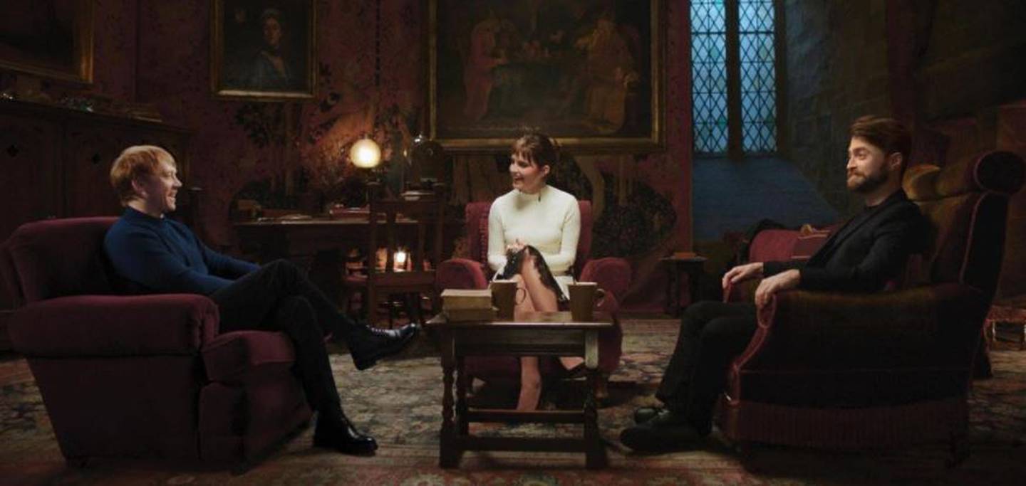 Rupert Grint, Emma Watson, and Daniel Radcliffe appear in the Harry Potter reunion. Photo / HBOÂ