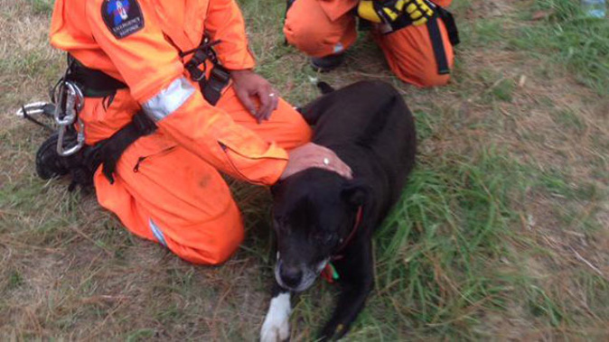 A Civil Defence Emergency team abseiled down the cliff, thick with blackberry, to rescue Gus.