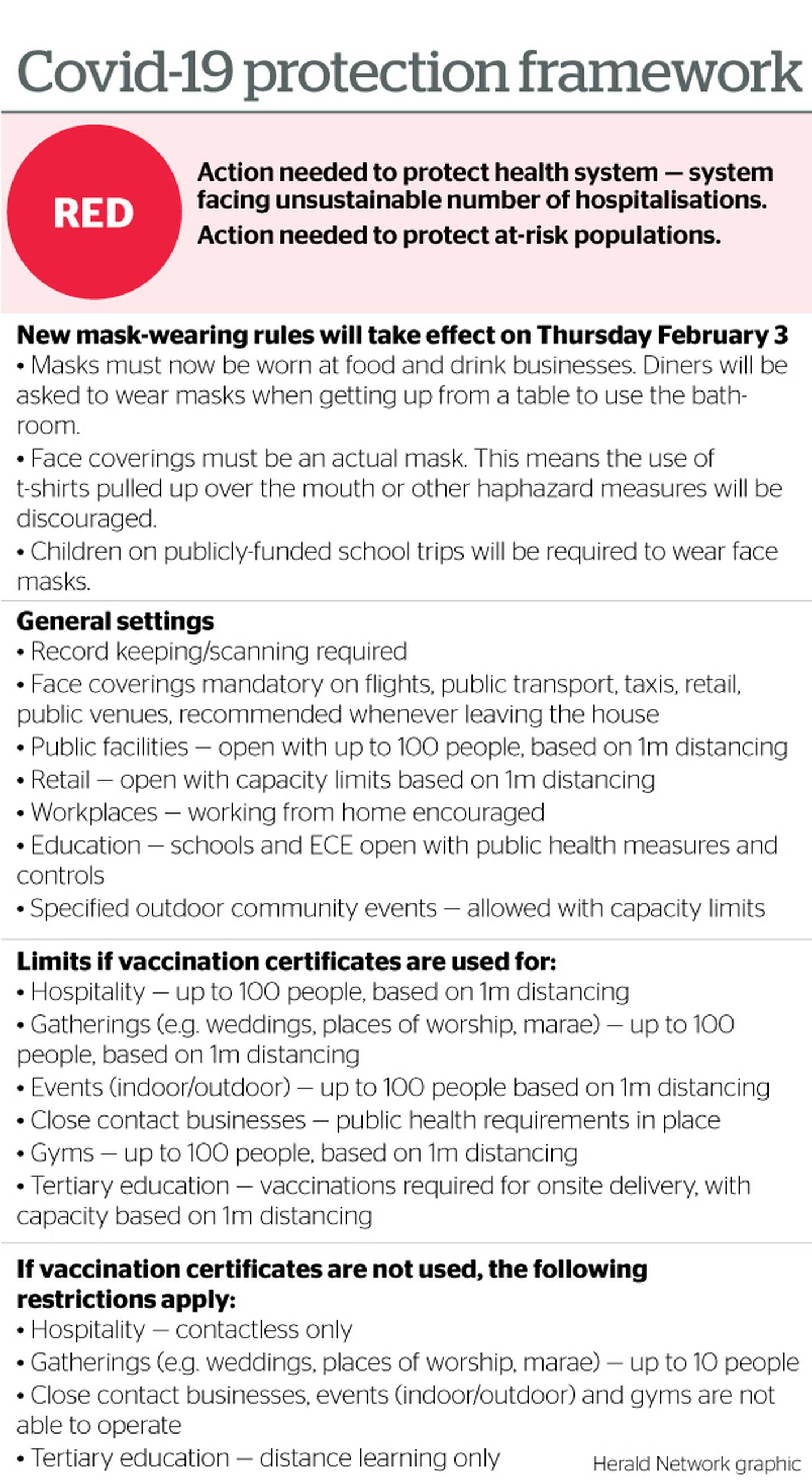 The government today announced it is tightening rules for mask use under the 'red' traffic light setting. Masks must now be worn in all food and drink venues, close-proximity businesses, events and gatherings. The mask exception for eating, drinking and exercising still stands.Â