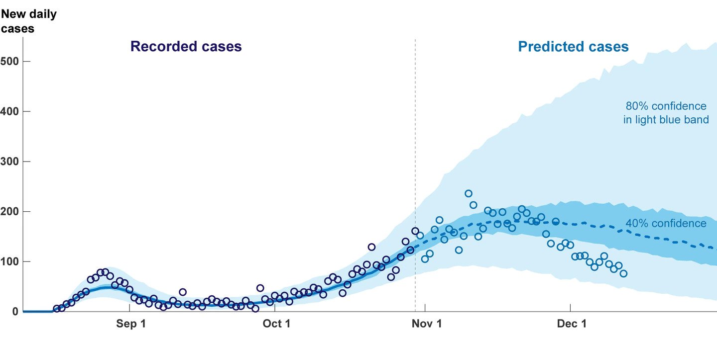 This is a delicate moment in our collective response to the pandemic. Over the coming weeks, there are several key graphs to keep an eye on. The first shows how many new Covid-19 community cases are reported each day.