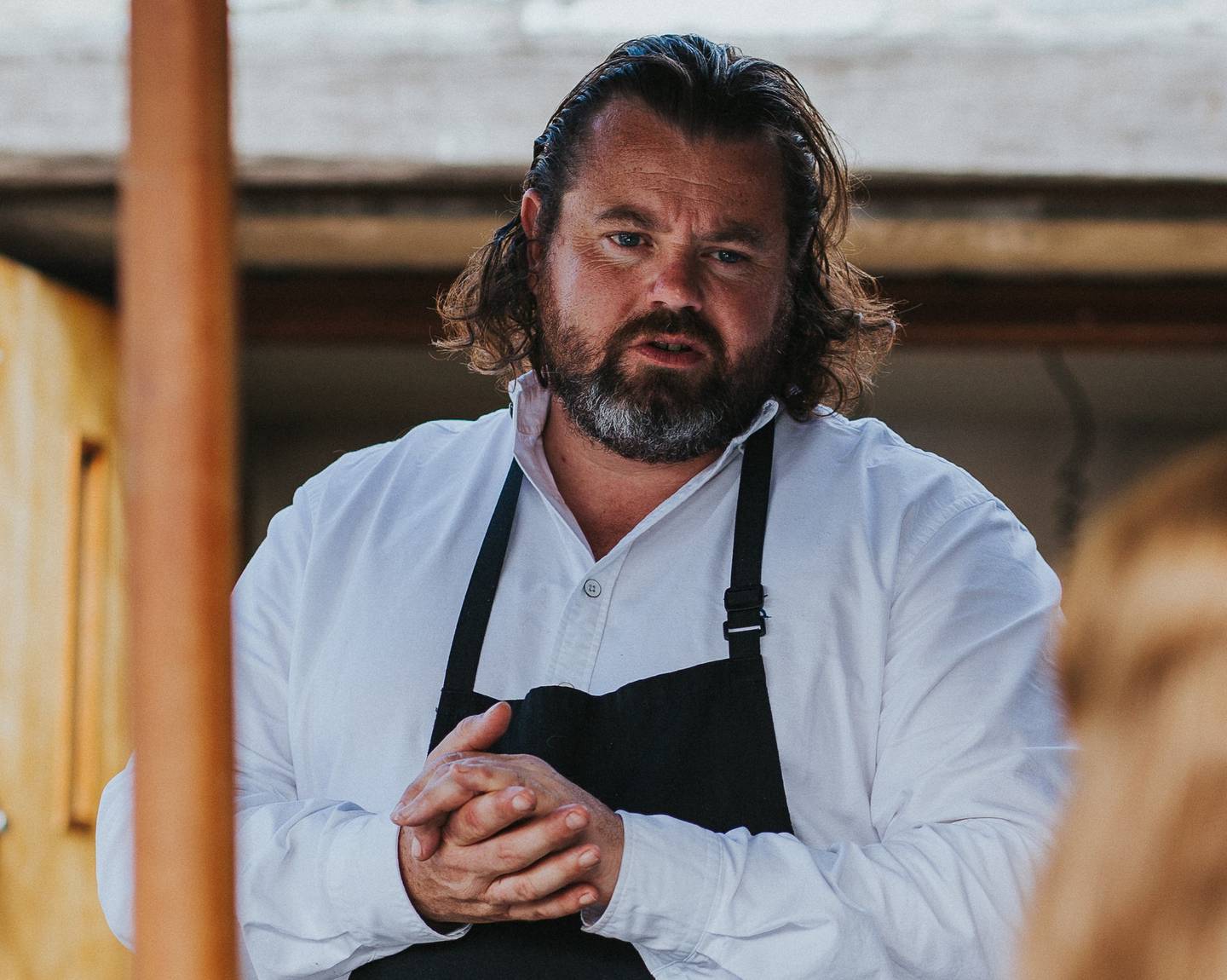 Executive Chef Vaughan Mabee speaks to diners tableside. Photo / Supplied; Amisfield