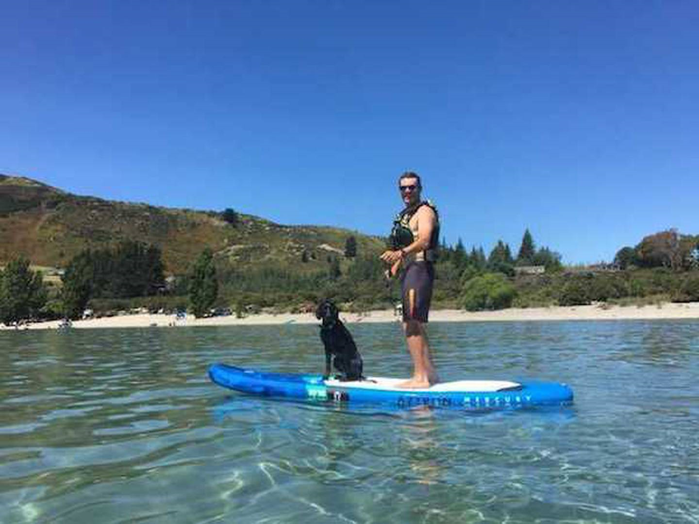The man, who lives in Wānaka with his wife and children and works as a builder, often goes floating down the river, just like he used to, with Magnum on the board.
